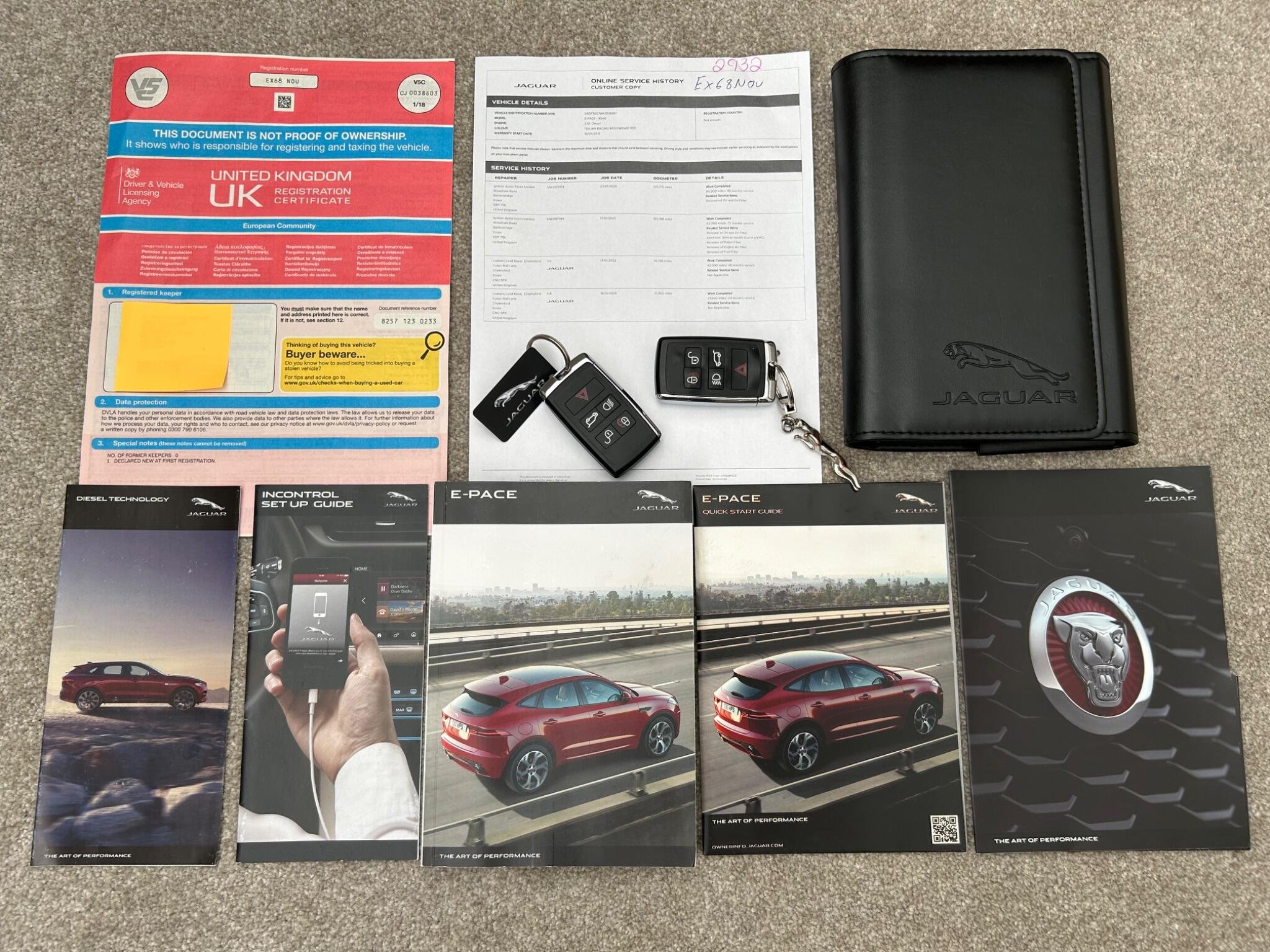 ONE OWNER FROM NEW Jaguar E-Pace 2.0 D150 R-Dynamic In Great Condition With New One Years Mot With No Advisories And Superb Service History. Jaguar Digital Service Print Out. ( Last Service 23/01/26. All Jaguar Manuals And Instruction Booklets In Jaguar Main Dealer Service Wallet. Great Specification With Power Steering, Electric Windows, Electric Heated Mirrors, Remote C/L With Two Remote Keys, Parking Sensors, Parking Camera, Dual-Zone Climate Control, Air Conditioning (ice Cold ), R-Dynamic Half Leather Interior, 10" Touch Pro Screen, Bluetooth Connectivity With Voice Control, Multi-Function Steering Wheel With Audio Phone And Cruise Control Functions, LED Lights With Approach Illumination, Hill Launch Assist, Child Locks, ISOFIX Child Seat Anchor Points, R-Dynamic Styling, 17" Alloy Wheels With Matching Michelin Tyres.